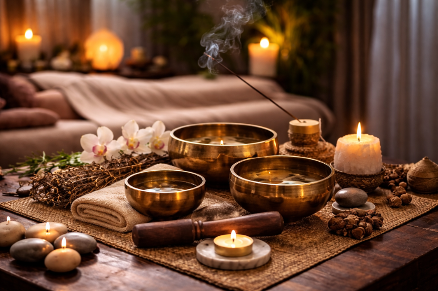 Le Modelage Apaisant, aussi appelé Massage aux bols chantants, est originaire de la région de l’Himalaya.
